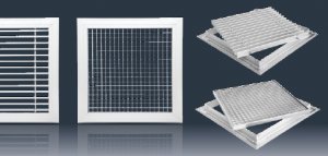- na kanałach wentylacyjnych prostokątnych i w sufitach. Mocowanie za pomocą widocznych śrub w wytłaczanych otworach w ramce czołowej.