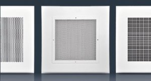 Panel czołowy stalowy, ramka czołowa wykonana z walcowanych profili z blachy stalowej, wypełnienie z blachy perforowanej. Anemostaty wyciągowe oferowane są w czterech wersjach perforacji o powierzchni efektywnej: