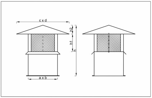 Wielkość czerpni dachowej typu CDA dobiera się w zależności od ilości i założonej prędkości napływu powietrza na czerpnię.