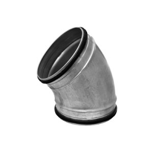 Kolano tłoczone BU45 z uszczelką EPDM z blach stalowych ocynkowanych produkowane jest w zakresie średnic od 80 mm do 250 mm.
