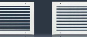Za pomocą przepustnicy przeciwbieżnej typ P. Ustawianie przepływu powietrza odbywa się od czoła bez konieczności demontażu kratki. Możliwość zamówienia kratki z deflektorem D - drugi rząd pionowych kierownic zamocowanych na stałe lub obrotowo.