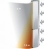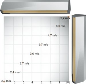 Maksymalny zasięg strugi powietrza w układzie poziomym (wysokość drzwi) oraz w układzie pionowym (szerokość drzwi) wynosi 7 m.