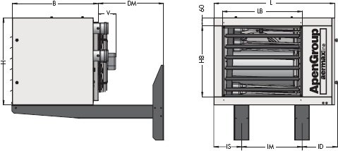 | L | B | H | V | HB | LB | IM | IS | ID | DM | GAS | GO | GV | [Kg] | |
