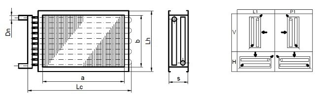 Typoszereg wymienników zawiera wielkości o wymiarach od 240x240 mm do 1440x1440mm. Wymienniki wykonywane są jako dwu lub trzy rzędowe. Zastosowana konstrukcja umożliwia łączenie wymienników w zestawy 4, 5 lub więcej rzędowe. Każdy z wymienników w seryjnym wykonaniu umożliwia odpowietrzenie i odwodnienie zarówno w pozycji pionowej jak i poziomej. W skład wymiennika wchodzi rama z kołnierzami; lamelowy wymiennik ciepła wykonywany z rurek miedzianych oraz lamel aluminiowych oraz kolektory i króćce miedziane z gwintami wewnętrznymi.