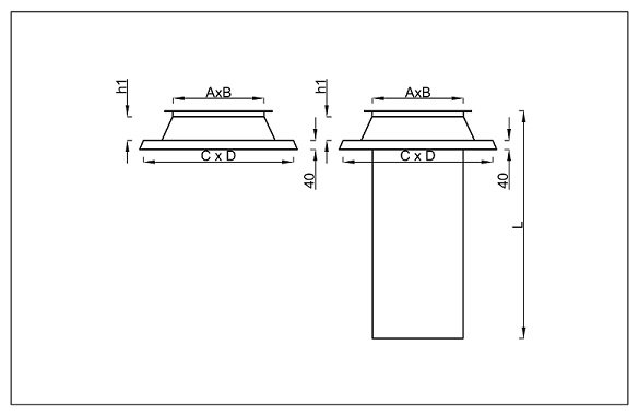 Podstawy dachowe typu A stosowane są jako elementy nośne czerpni i wyrzutni dachowych o przekroju prostokątnym. Wielkość podstawy typu A dobiera się w zależności od wielkości elementu współpracującego