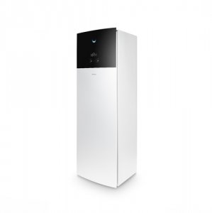 - Jednostka przypodłogowa typu „wszystko w jednym”, zawierająca zbiornik ciepłej wody użytkowej ze stali nierdzewnej o pojemności 180l