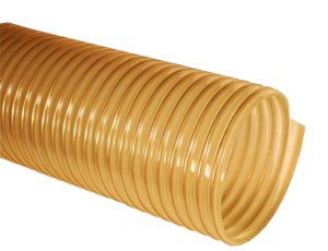Przewód elastyczny techniczny 1PL04 do transportu grawitacyjnego i pneumatycznego mediów gazowych, stałych i ciekłych, powodujących duże ścieranie (takich jak trociny, wióry, pyły ceramiczne, piasek, żwir, cząsteczki szklane, granulaty, roztwory wodne, zawiesiny, szlam itp.) ; stosowany min. w przemyśle drzewnym, meblarskim, ceramicznym, kopalniach piasku i żwiru, w przemysłowych i drogowych maszynach czyszczących.