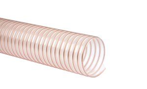 Przewód elastyczny techniczny 2PCV01 do transportu grawitacyjnego i pneumatycznego mediów gazowych, stałych i ciekłych, takich jak trociny, wióry, granulaty, roztwory wodne, zawiesiny, szlam itp., stosowany min. w przemyśle drzewnym, meblarskim, chemicznym