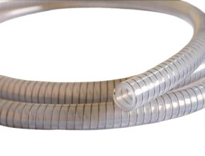 Przewód elastyczny techniczny 8VSP01 do odpylania, transportu grawitacyjnego i pneumatycznego sypkich, suchych artykułów spożywczych (ziarna zbóż, cukier, mąka), w przemyśle spożywczym, tytoniowym, w elewatorach, dla żywności uwodnionej i o odczynie kwaśnym (soki, woda pitna, alkohol).