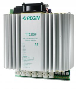 TTC-80F przystosowany do montażu na szynie DIN, w szafce lub innej obudowie. Jest łączony szeregowo pomiędzy zasilanie a nagrzewnicę elektryczną i może regulować obciążenia połączone w trójkąt lub gwiazdę. Może również regulować asymetryczne obciążenia połączone w trójkąt.
