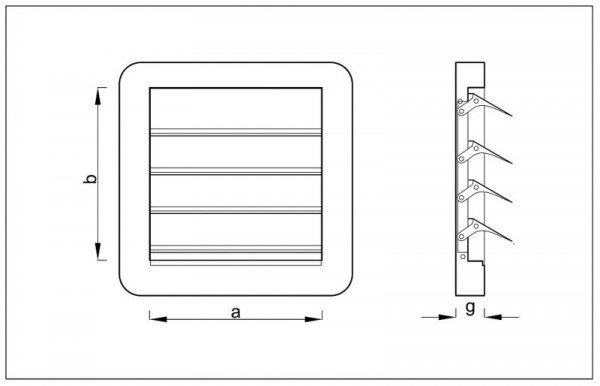 Wyrzutnie ścienne typ ŻW wykonane są ze stalowej ramy malowanej proszkowo i samoczynnych kierownic aluminiowych.