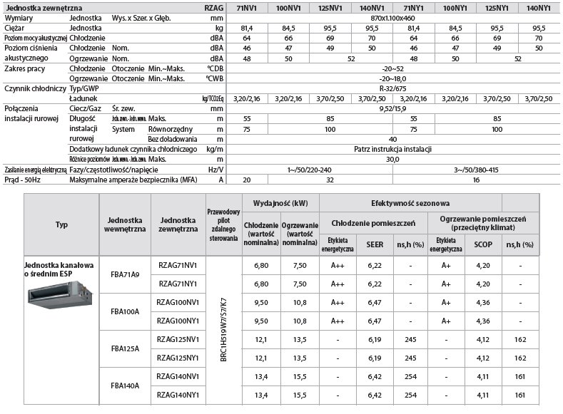 - Zunifikowana gama klimatyzatorów kanałowych, przystosowanych do czynnika chłodniczego R-32 and R-410A