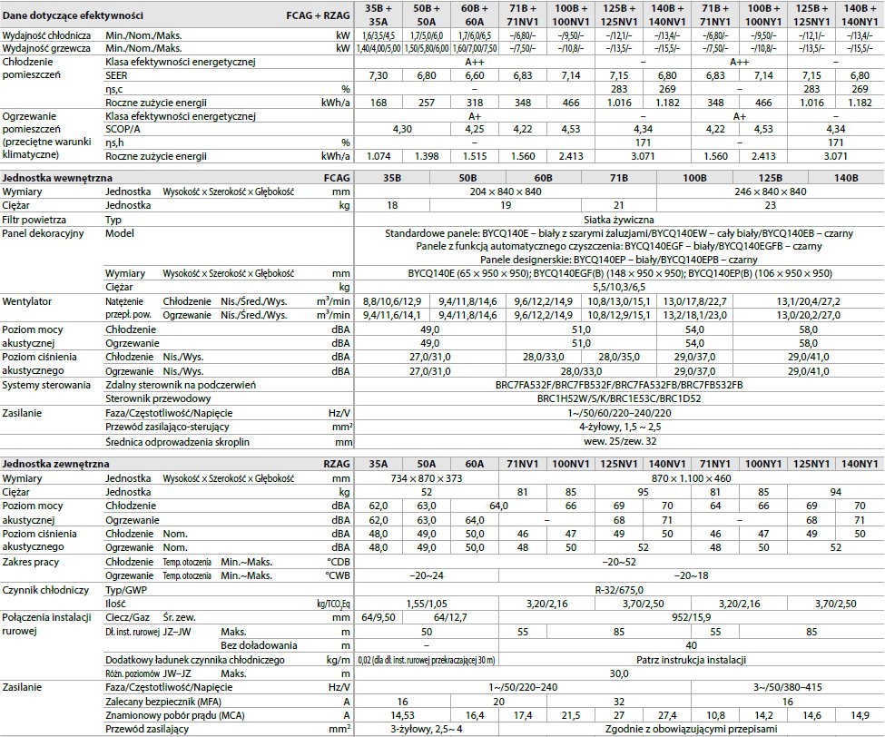 - etykiety energetyczne do A++ w trybie chłodzenia i ogrzewania