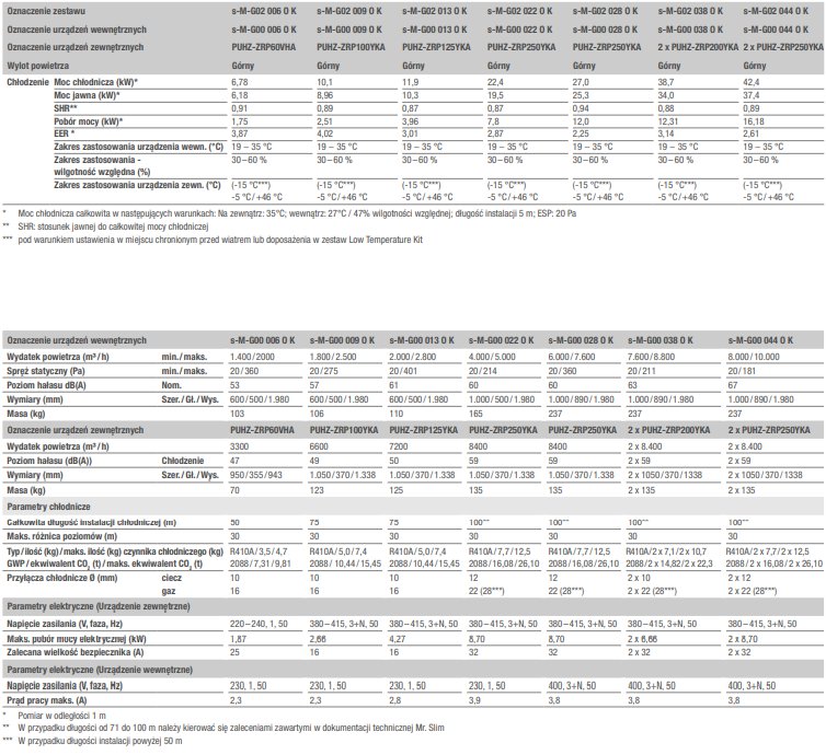 - Moce 6–28,0 kW z jednym urządzeniem zewnętrznym Mr. Slim