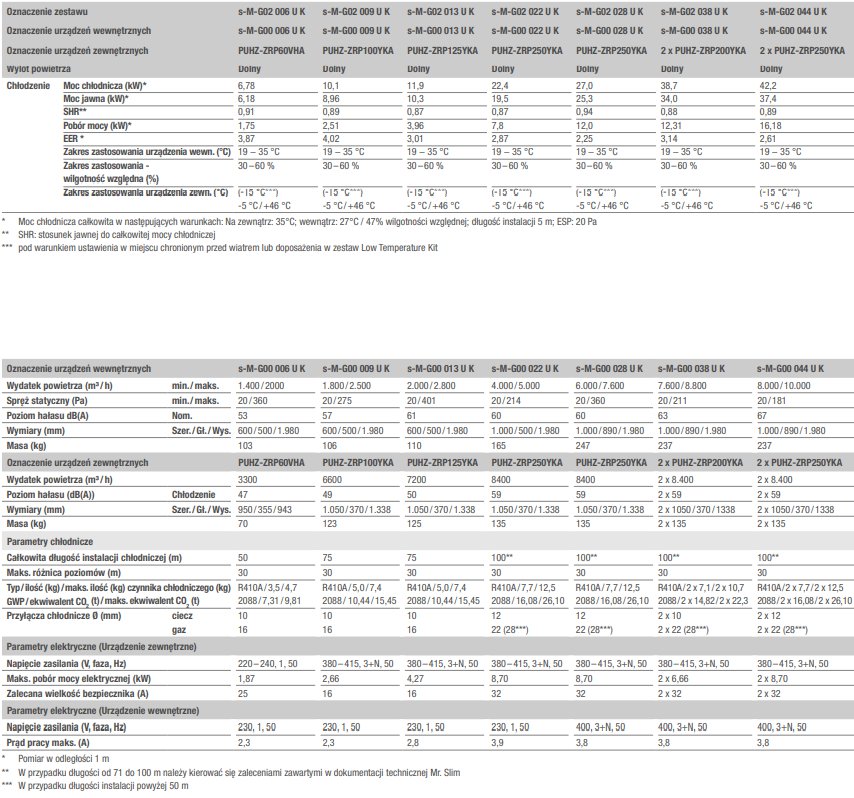 - Moce 6–28,0 kW z jednym urządzeniem zewnętrznym Mr. Slim