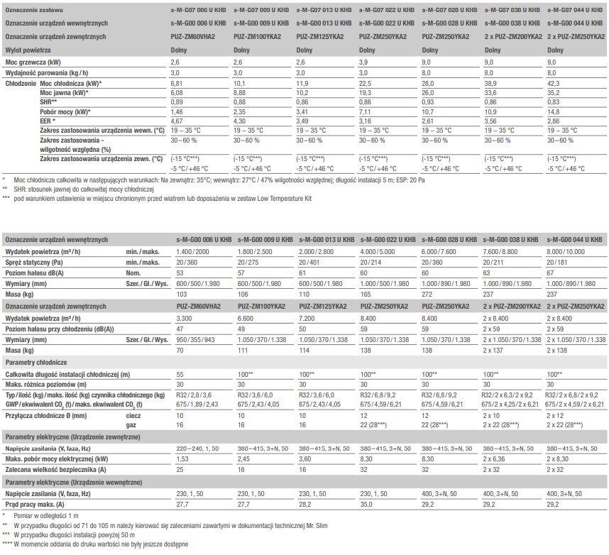 - Moce 6–28,0 kW z jednym urządzeniem zewnętrznym Mr. Slim