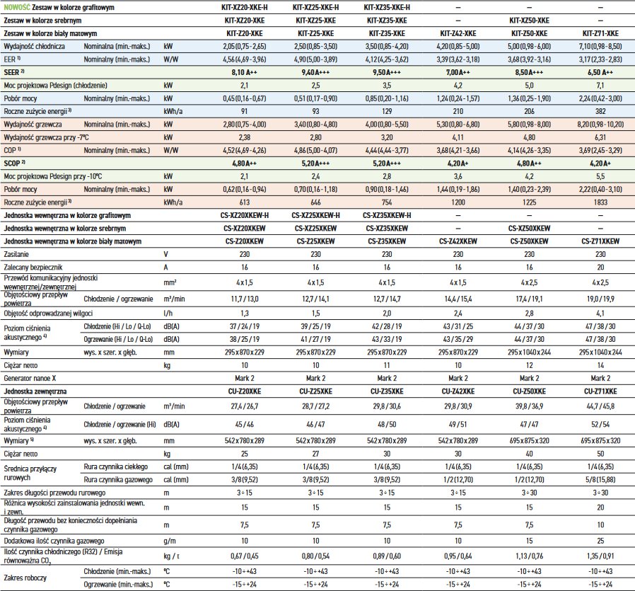 - Poprawione współczynniki SEER/SCOP – najwyższa klasa efektywności energetycznej,
