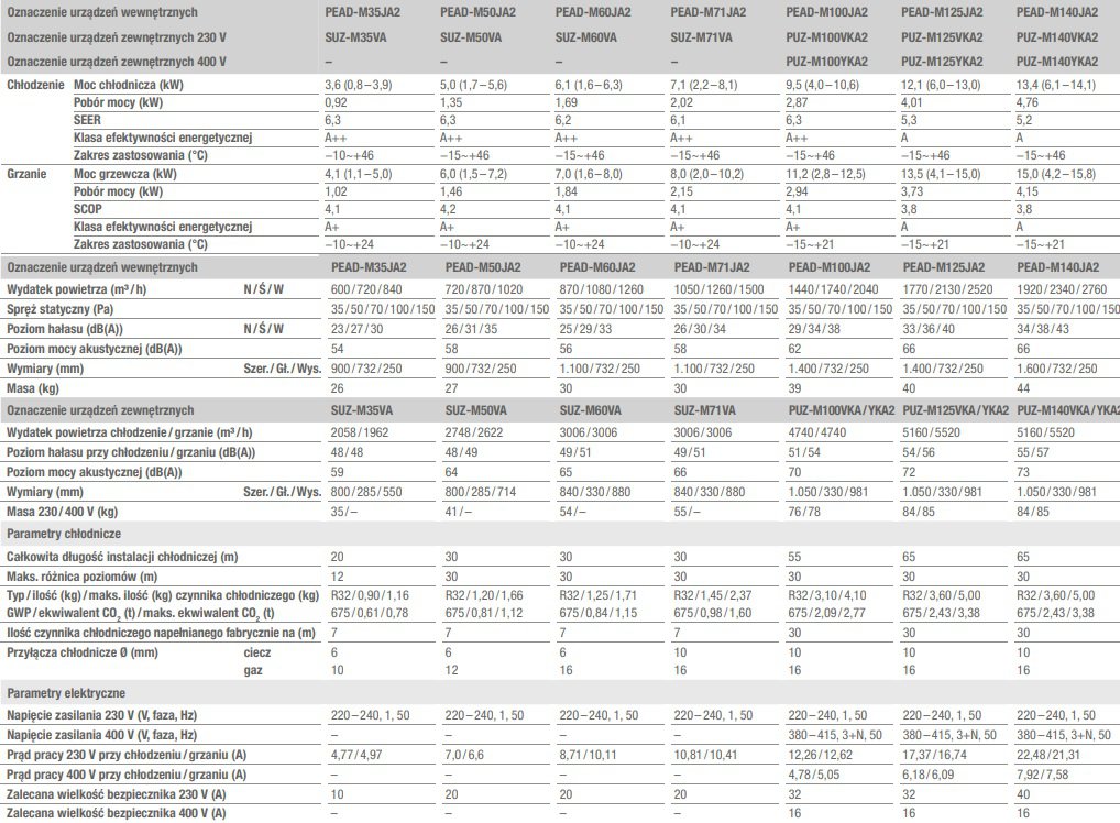 PEAD-M140JA2 / PUZ-M140VKA2 (230V) PEAD-M-JA Dostępność