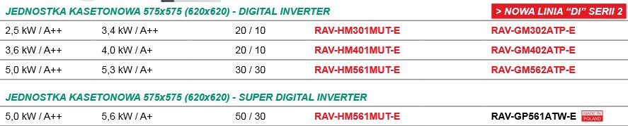Klimatyzator kasetonowy RAV-HM_1UTP-E / RAV-GM_AT-E DIGITAL INVERTER