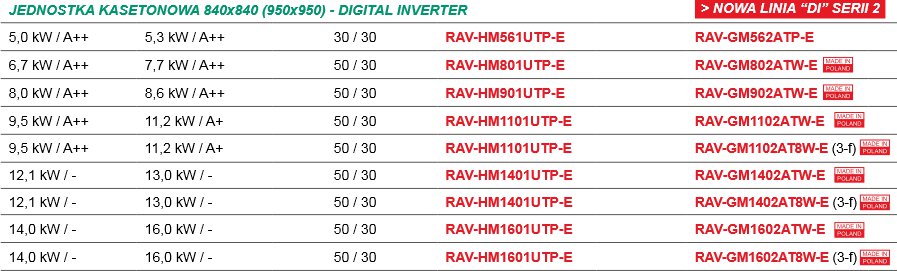 Klimatyzator kasetonowy DIGITAL INVERTER RAV-RM_1UTP-E z agregatem RAV-GM_ATP-E