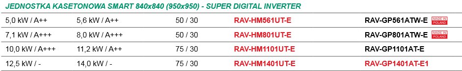 Klimatyzator kasetonowy SUPER DIGITAL INVERTER SMART RAV-GM_1UT-E z agregatem RAV-GP_ATW-E