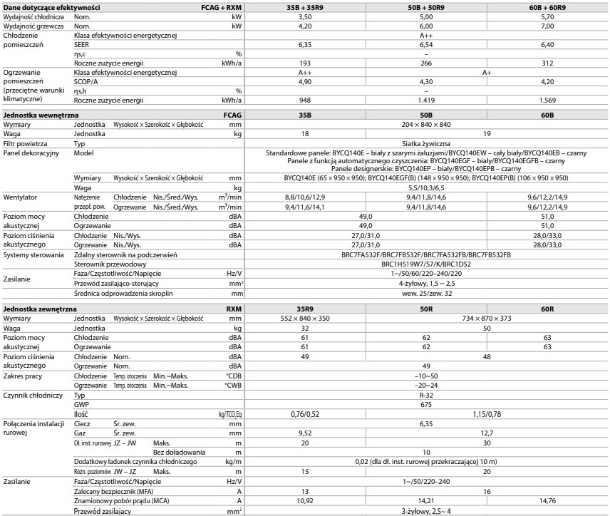 Klimatyzator kasetonowy DAIKIN FCAG-B z agregatem RXM-R