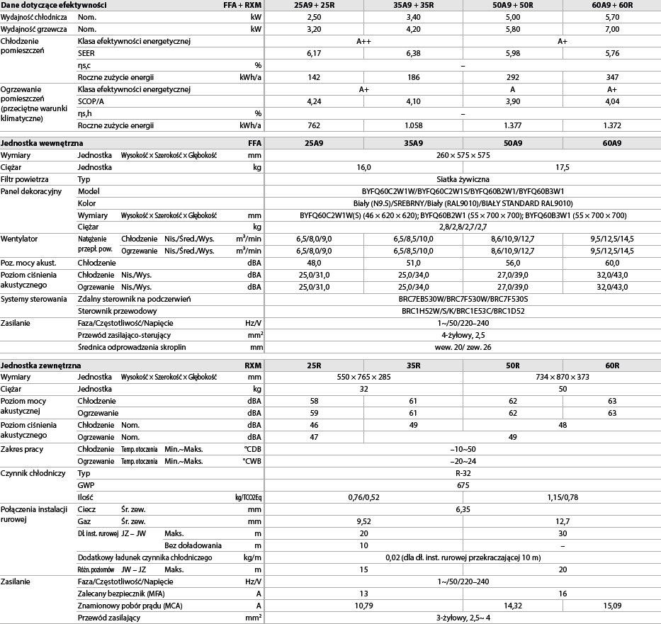 - Wybór produktu na czynnik chłodniczy R32 zapewnia zmniejszenie oddziaływania na środowisko o 68% w porównaniu do czynnika chłodniczego R410A i bezpośrednio prowadzi do obniżenia zużycia energii dzięki wysokiej efektywności energetycznej