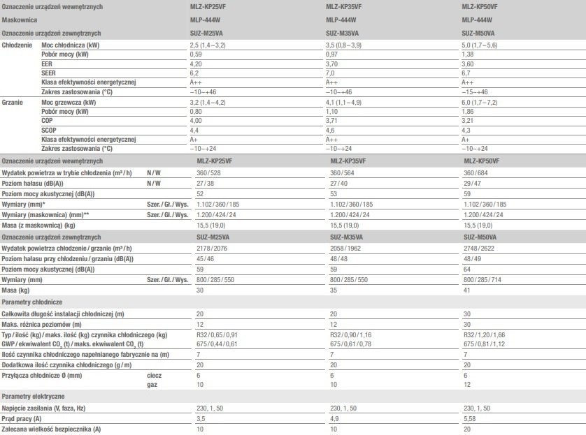 MLZ-KP25VF / SUZ-M25VA / MLP-444W MLZ-KP Dostępność
