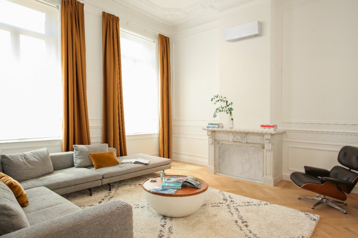 - Tryb komfortowy. Gwarancja operacji bez przeciągów. Zimne i gorące powietrze nie jest skierowane bezpośrednio na osoby znajdujące się w pomieszczeniu.