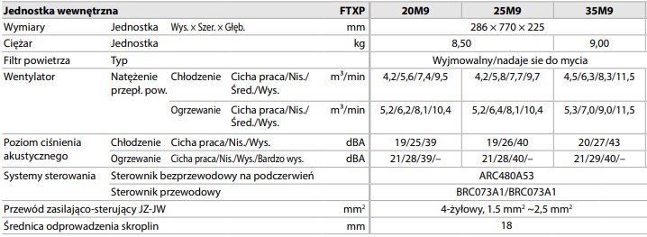 Jednostka wewnętrzna ścienna FTXP-M9