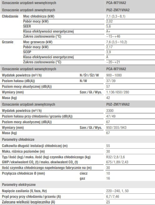 - PCA-M71HA2 / PUZ-ZM71VHA2