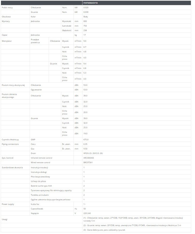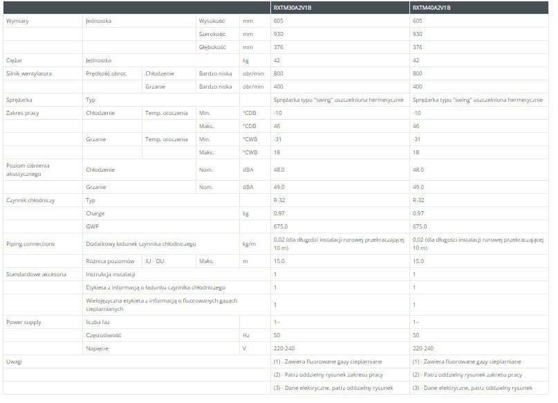 - Wartości sprawności sezonowej: pełny zakres klasy A++ w trybie chłodzenia i ogrzewania