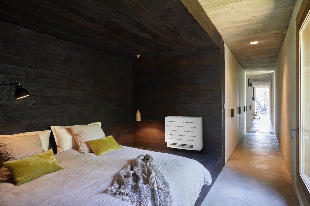 - Nagrzewanie podłogi optymalizuje konwekcję ciepła poprzez dystrybucję ciepłego powietrza z dolnej części jednostki