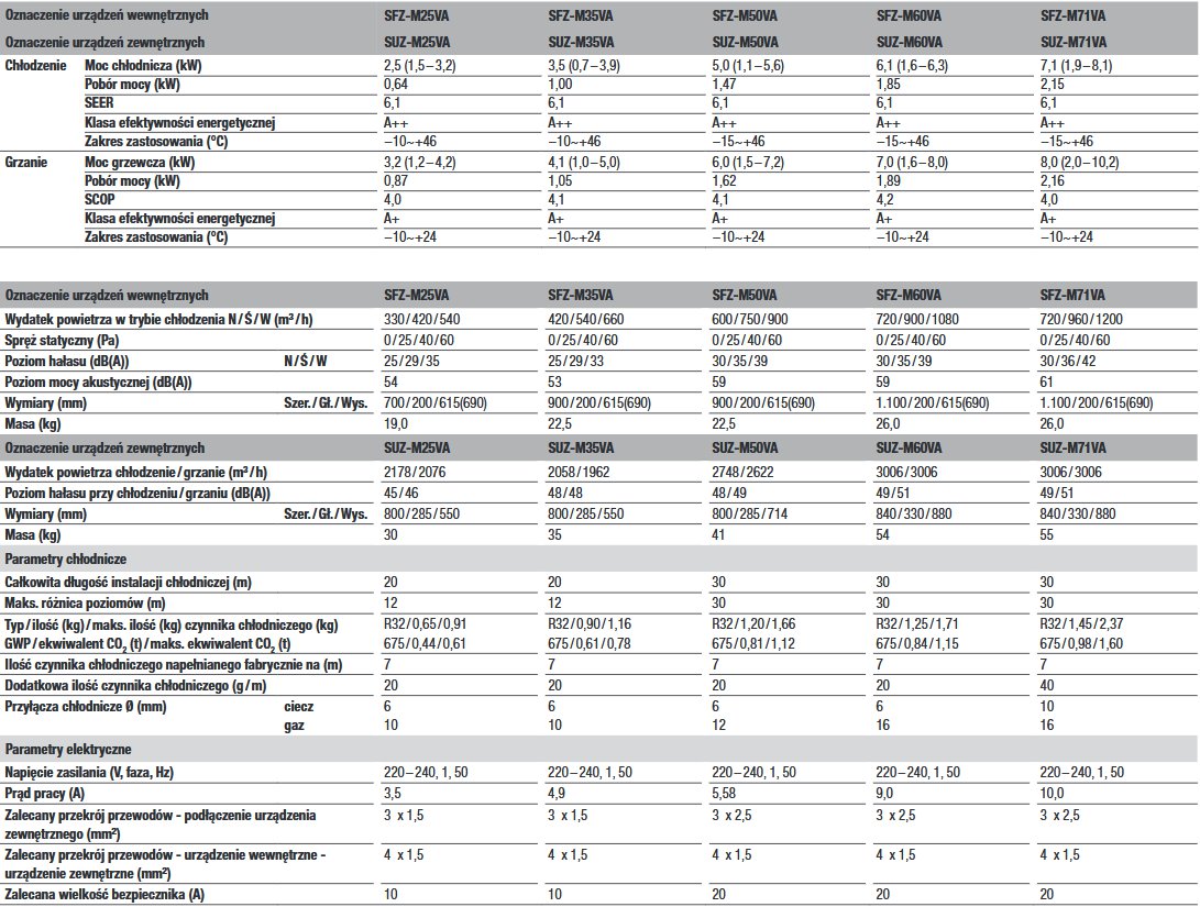 SFZ-M71VA/SUZ-M71VA SFZ-M/SUZ-M Dostępność