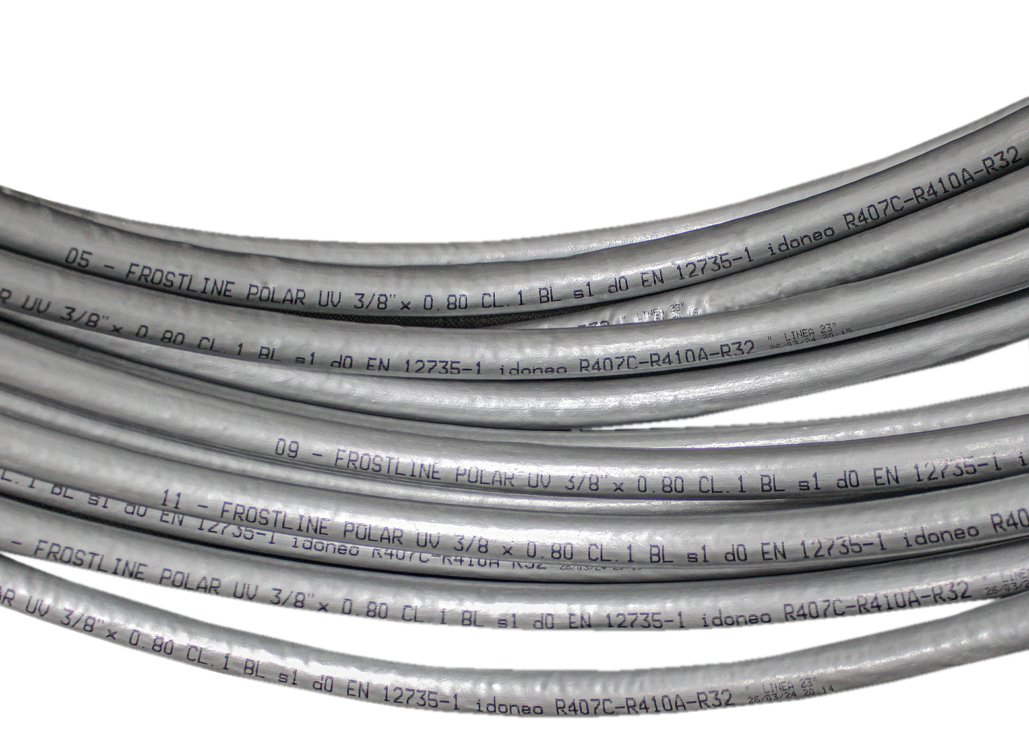 FrostLine Polar UV to rura miedziana pre-izolowana do instalacji klimatyzacyjnych, chłodniczych i grzewczych do zastosowań zewnętrznych spełniająca wysokie standardy i normy europejskie. Rury przeznaczone są do dystrybucji cieczy i gazów w instalacjach zawierających czynniki chłodnicze R407, R410 i R32.