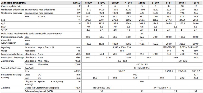 - Szeroki typoszereg jednostek (od 4 do 12 HP) odpowiedni do projektów aż do 200 m² z ograniczoną ilością miejsca