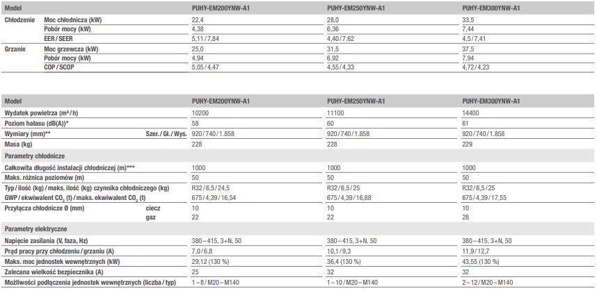 Podwyższona efektywność sezonowa / Seria Y / chłodzenie lub grzanie