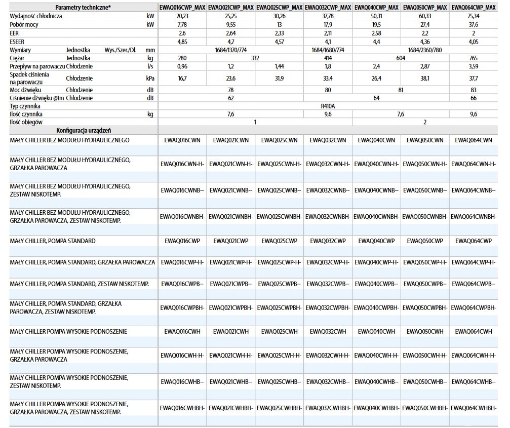 Agregat chłodniczy DAIKIN EWAQ-CW ze sterowaniem inwerterowym, chłodzony powietrzem