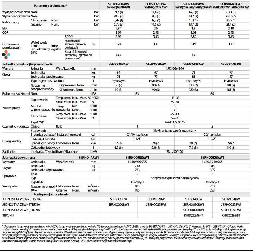 Pompa ciepła chłodzona powietrzem ze sprężarką Scroll ze sterowaniem inwerterowym, wersja split DAIKIN SEHVX-BAW + SERHQ-BAW1