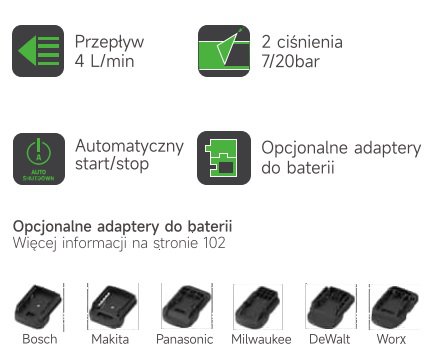 Ciśnienie: 7/20 barów umożliwia dopasowanie mocy do różnych zadań, od delikatnego czyszczenia po intensywne prace.
