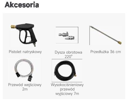 | Węże | Przewód wejściowy 2m / Przewód wyjściowy 7m |