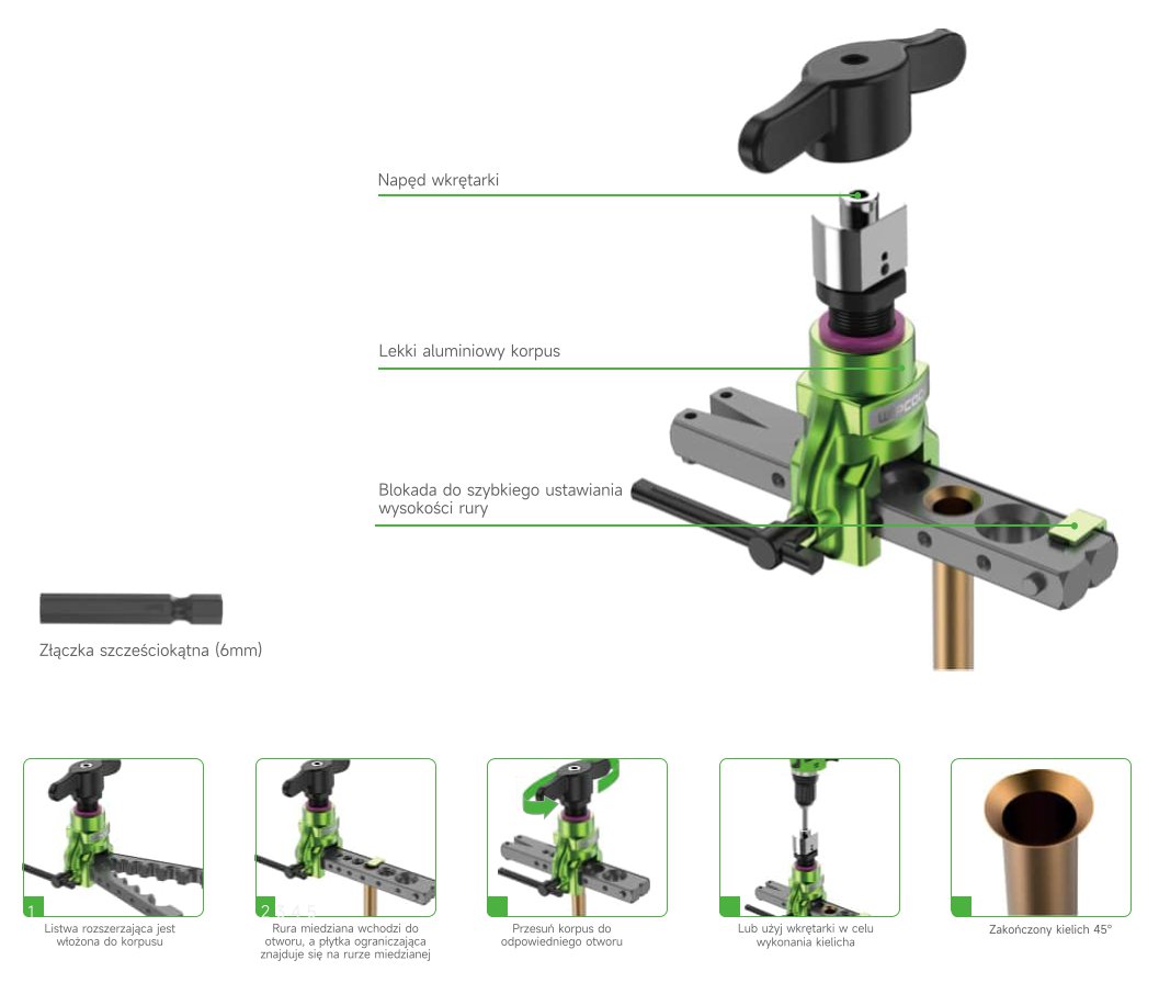 Idealne narzędzie dla profesjonalistów HVAC, instalatorów i serwisantów, którzy cenią sobie precyzję, wydajność i uniwersalność w swojej pracy. Zapewnij sobie najwyższy standard wykonywanych usług dzięki kielicharce, która jest synonimem nowoczesności i niezawodności.