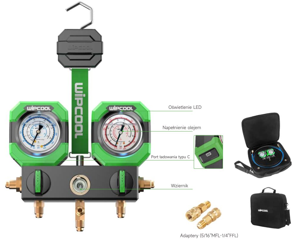 Zestaw manometrów Wipcool MG-2K – Profesjonalne narzędzie do pomiaru ciśnienia.