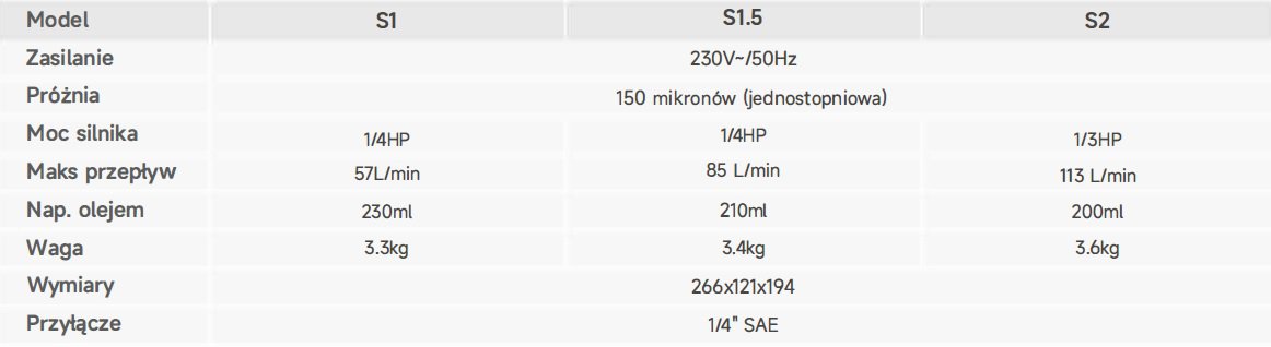 Seria S pomp próżniowych to wybór, kiedy cena jest kluczowym kryterium. Dostępna w szerokim zakresie pojemności, z przepływem od 57 do 113 l/min, są idealne dla systemów typu split, lekkich zastosowań motoryzacyjnych oraz niewielkich aplikacji komercyjnych.