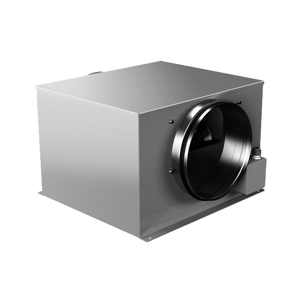 Obudowa wentylatora wykonana jest z ocynkowanej blachy stalowej. Od strony wlotowej i wylotowej zastosowano znormalizowane króćce przyłączeniowe wyposażone w gumowe uszczelki. Konstrukcja zbliżona jest do tłumika. Izolację akustyczną stanowi 40 mm warstwa wełny mineralnej, zabezpieczona od wewnątrz perforowaną blachą. Zdejmowana klapa rewizyjna ułatwia czyszczenie i konserwację wentylatora. Zespół wirnik-silnik oraz spiralną obudowę wewnętrzną łatwo można wymontować.
