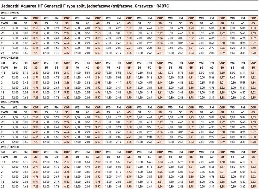Pompa ciepła Panasonic Aquarea HT Split (High Temperature) - Generacja F (R407C)