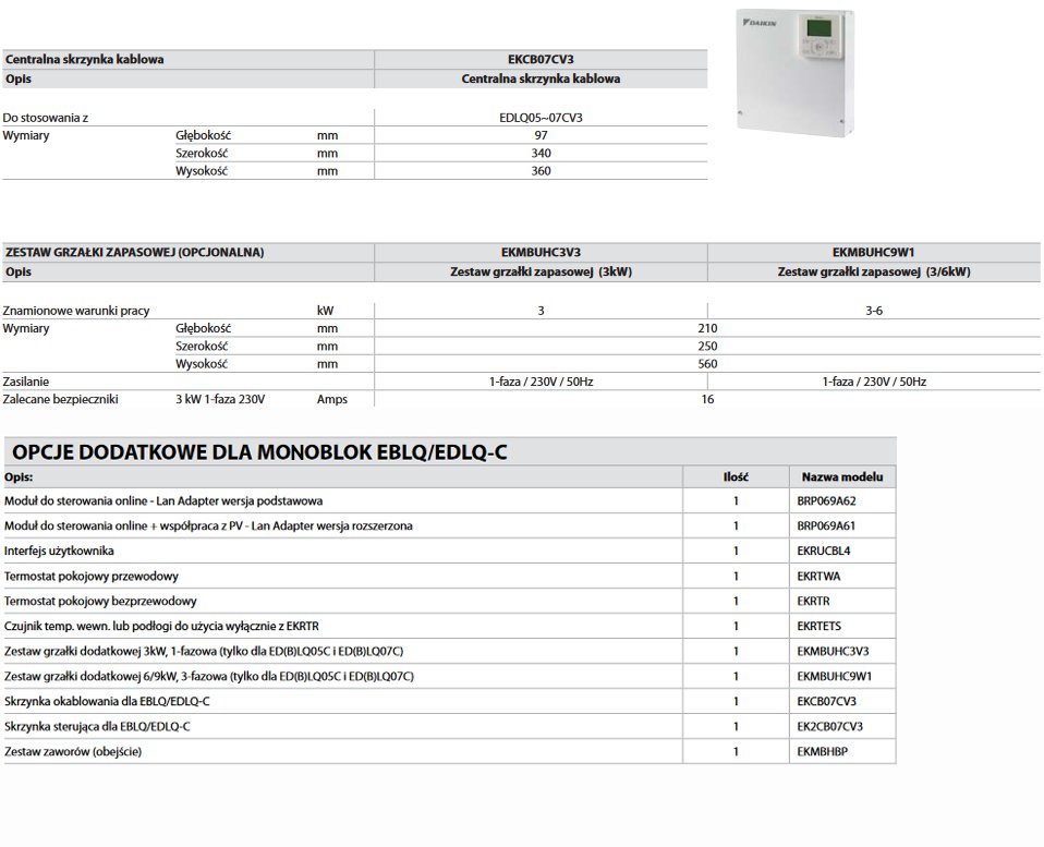 - Rozwiązanie wyposażono w opcjonalną grzałkę zapasową
