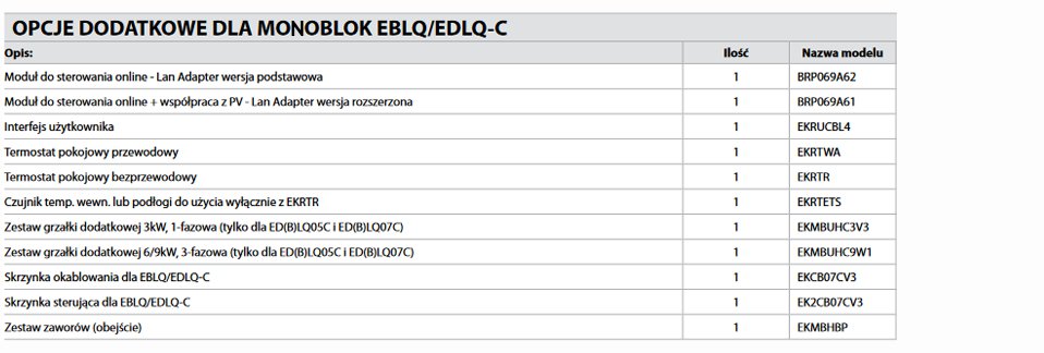 - Do urządzenia należy zamówić sterownik EKRUCBL4. W przypadku podłączenia zasobnika cwu (lub innych opcji takich jak: termostat pokojowy, klimakonwektor FWXV, skrzynkę EK2CB07CV3, mierniki en.elektr.) należy zamówić również centrum okablowania EKCB07CV3