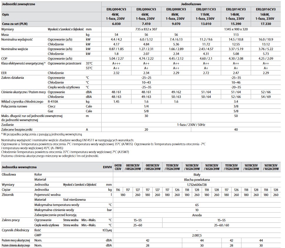 Niskotemperaturowy zintegrowany hydroboks split EHVH z pompą ciepła niskotemperaturową Daikin Altherma LT (typu split) ERLQ-CV3