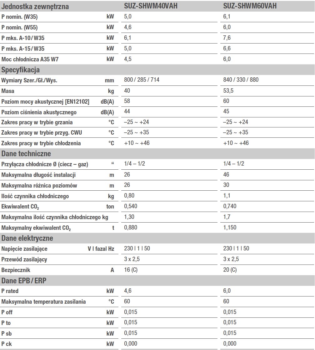 - Temperatura zasilania 60oC bez użycia grzałek elektrycznych.